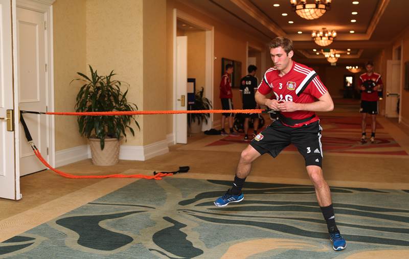 Aufgrund eines Gewitters verlegte die Werkself das Training ins Hotel. Bild: KSmediaNET