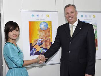 ![]() Die globale Gewinnerin des Internationalen Kinder-Umweltmalwettbewerbs, die 14-jährige Tin Chi Ting Coco aus Hongkong, mit Hans-Dieter Hausner, Bayer-Landessprecher in Japan | Eine dunkle Hand, Symbol für die Umweltzerstörung, entwendet bei einem Geschicklichkeitsspiel die Bausteine der Artenvielfalt - das natürliche Gleichgewicht ist gefährdet. Doch der Planet Erde kann gerettet werden, zum Beispiel durch die Nutzung von Solar- und Windenergie oder Recycling, dargestellt auf einer zweiten Hand. Mit dieser gemalten Botschaft gewann die 14-jährige Tin Chi Ting Coco aus dem chinesischen Hongkong den 19. Internationalen Kinder-Umweltmalwettbewerb, den die Bayer AG und das Umweltprogramm der Vereinten Nationen (UNEP) als Teil ihrer globalen Partnerschaft gemeinsam mit weiteren Projektpartnern ausrichteten. Das Thema lautete "Artenvielfalt". "Wenn wir jetzt nicht handeln, indem wir die Tiere und unsere Umwelt schützen, wird die Erde aus den Fugen geraten", fasst die junge Chinesin ihre Botschaft in Worten zusammen. Sie wurde im Rahmen der Internationalen Kinder-Umweltkonferenz in Nagoya, Japan, zusammen mit der Zweitplatzierten, der elfjährigen Katherine Z. Liu aus den USA, sowie den Gewinnern aus den Weltregionen geehrt. Die Gewinnerin in Europa ist die 11-jährige Hanna Gall aus Ungarn. In Afrika gewann der 10-jährige Kenianer Gowtham Vigneshwar. Die Beste in Nordamerika kommt aus den USA: die 13-jährige Sylvia Gong. Enrique Suarez Estrada, 10 Jahre, aus Mexiko setzte sich in der Region Lateinamerika und Karibik durch. Siegerin in Westasien ist die 11 Jahre alte Charlotte Petra Sakura Chalkley aus den Vereinigten Arabischen Emiraten. In Asien-Pazifik siegte Wigavee Rattamanee, 8 Jahre, aus Thailand.Hans-Dieter Hausner, Bayer-Landessprecher in Japan, überreichte im Namen des Unternehmens gemeinsam mit Vertretern von UNEP und den weiteren Projektpartnern - der in Japan ansässigen "Foundation for Global Peace and Environment" und Nikon - Geld- und Sachpreise. Zudem durften alle Gewinner nach Japan reisen und an der Umweltkonferenz teilnehmen. "Der Kindermalwettbewerb ist eine tolle Erfolgsgeschichte. Kinder aus aller Welt nehmen daran teil - aus verschiedenen Kulturkreisen, Religionen und politischen Systemen. Und die Bilder können auf einzigartige Weise etwas leisten, was Worte kaum schaffen: die Augen zu öffnen", so Hausner bei der Preisverleihung. An der Zeremonie in Nagoya nahmen neben Vertretern von Politik und Umweltorganisationen rund 250 Kinder aus 40 Ländern teil. Die Kinder tauschen sich vom 20. Oktober bis 26. Oktober 2010 - parallel zur ebenfalls in Nagoya aktuell stattfindenden UN-Konferenz zum Schutz der Artenvielfalt - über ihre Erfahrungen mit Umwelt und Umweltschutz aus und entwickeln Ideen für den weltweiten Artenschutz. Die im jährlichen Wechsel für Kinder (8 bis 14 Jahre) und Jugendliche (15 bis 24 Jahre) stattfindende Konferenz ist der globale Umwelt-Gipfel für die junge Generation und ebenfalls fester Bestandteil der seit 2004 bestehenden Partnerschaft zwischen UNEP und Bayer. Als der globale Partner von UNEP im Bereich Jugend und Umwelt unterstützt Bayer die Konferenz finanziell. Erneute Rekordbeteiligung Das Malwettbewerbs-Thema Artenvielfalt orientierte sich an dem von den Vereinten Nationen ausgerufenen "Internationalen Jahr der Biodiversität 2010" - und stieß auf große Resonanz: Rund 600.000 Mädchen und Jungen im Alter von sechs bis 14 Jahren aus 95 Ländern reichten dazu Bilder ein. In China wurde mithilfe der Unterstützung eines lokalen Partners außerdem ein spezieller chinesischer Malwettbewerb inklusive Zusatzaktionen in Schulen veranstaltet, woran 2,6 Millionen junge Chinesen teilnahmen. Dadurch erreichte die Beteiligung die absolute Rekordmarke von 3,2 Millionen eingereichten Bildern - nach 2,4 Millionen Einreichungen aus 89 Ländern im Vorjahr. Die 20 besten Bilder aus China gingen in das Auswahlverfahren des 19. Internationalen Kinder-Umweltmalwettbewerbs ein. Über die Gewinner entschied eine unabhängige Jury aus Vertretern von UNEP, Bayer, der Stiftung, Nikon und internationalen Experten aus dem Bereich der Kunstpädagogik. Eine Ausstellung mit hochwertigen Drucken von rund 60 ausgewählten Bildern wird derzeit in Nagoya gezeigt und war bereits im Bayer-Kommunikationszentrum "BayKomm" in Leverkusen zu sehen. In den kommenden Monaten wird die Wanderausstellung international eingesetzt. Aufruf zum 20. Internationalen Kinder-Umweltmalwettbewerb: "Das Leben in den Wäldern" Das Motto des nächsten Malwettbewerbs 2011 lautet "Das Leben in den Wäldern" - in Anlehnung an das "Internationale Jahr der Wälder 2011". Kinder aus aller Welt im Alter zwischen 6 und 14 Jahren (Stichtag: 5. Juni 2011, Weltumwelttag) können ihre Bilder noch bis zum 15. April 2011 einreichen. Die Bilder müssen das Format DIN A4 oder DIN A3 haben. Auf die Rückseite müssen Vor- und Nachname, Alter, Adresse, Telefon und die Mailadresse des Teilnehmers beziehungsweise eines Erziehungsberechtigten angegeben sein. Die Malmaterialien sind frei wählbar. Die Bilder dürfen zu keinem anderen Malwettbewerb eingesandt werden. Die Beiträge sind postalisch an das zuständige UNEP-Regionalbüro einzusenden - in Europa an folgende Adresse: United Nations Environment Programme (UNEP) Regional Office for Europe International Environment House, 11-13 Chemin des Anémones 1219 Châtelaine-Genf Schweiz Weitere Informationen zur Bayer-UNEP-Partnerschaft finden Sie unter: http://ww.unep.bayer.de |
